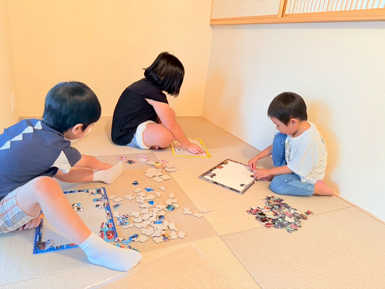 息子にとっても素敵な時間でした。亜沙美さんのお子さん3人(2歳・5歳・7歳)がいきなり手をつないで遊んでくれ、とても面倒見がよく、一緒に走り回ったりパズルをしたり。初対面とは思えない自然な関わりで、あっという間に打ち解けていました。satoieの建築士でもある亜沙美さんは、3人の子どもを育てながら仕事をするパワフルなママ。その大変さを理解しているからこそ、会話の共感力が高く、親身になって寄り添える人だと強く感じました。心底子どもが好きで、ご両親をとても大切にしている。その姿勢は姉妹である瞳さんにも共通していて、「人を大切にする」という家族の価値観が会社の姿勢にも表れているように思えました。