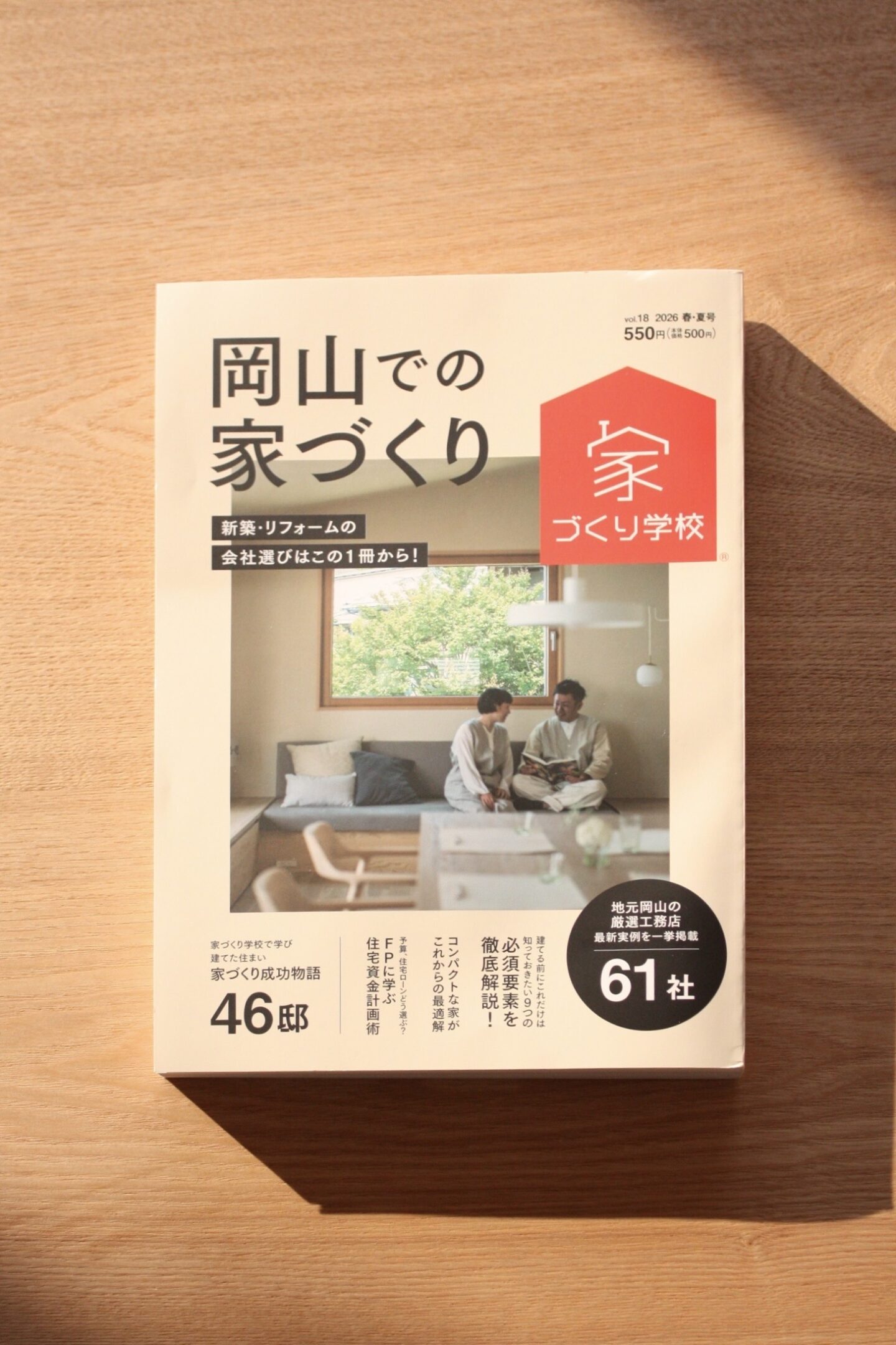 もう一つは、家づくり学校さんが発行する住宅雑誌「岡山での家づくり」に掲載されたお知らせです。