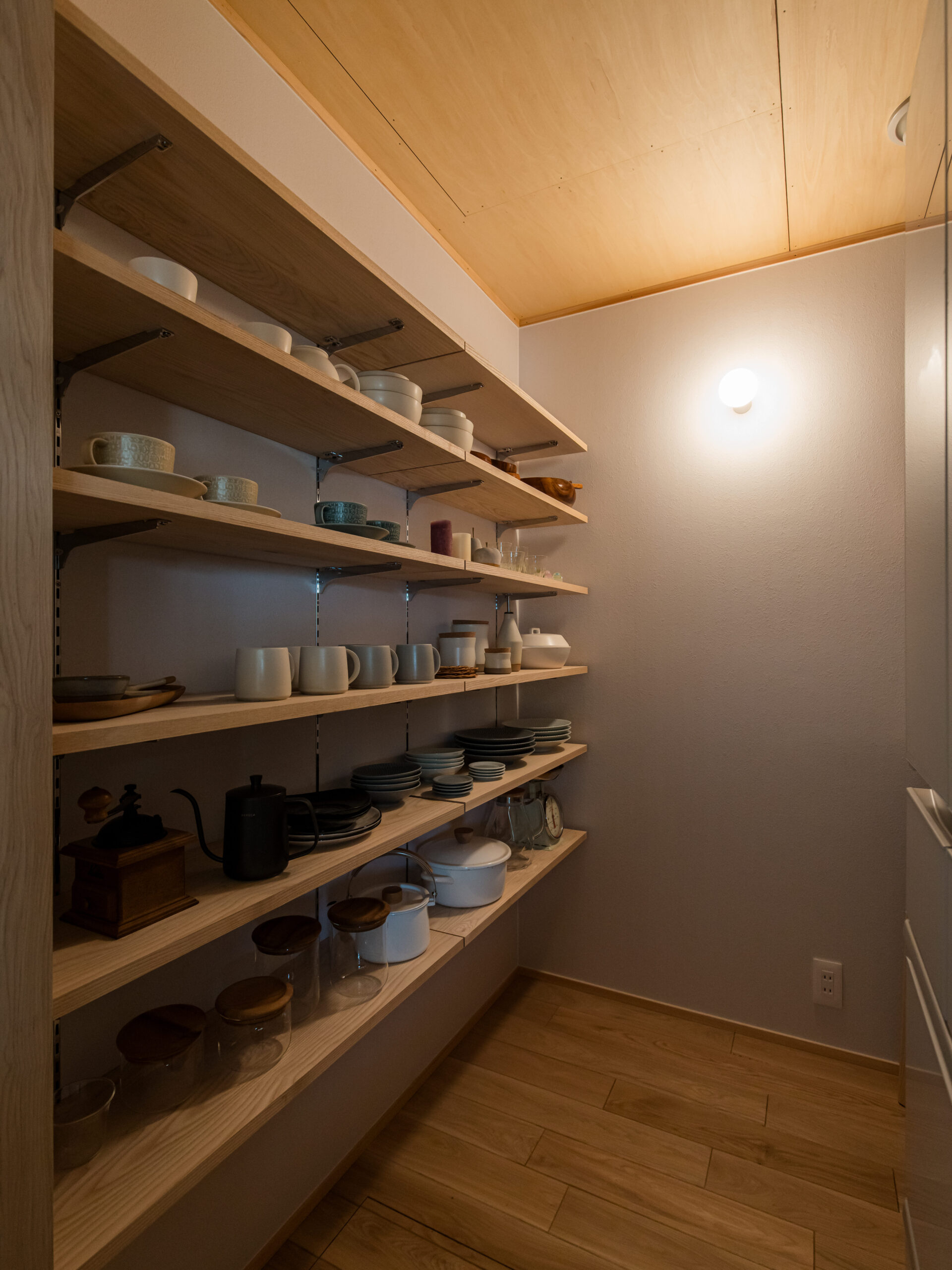 モデルハウスでは、1階の居室や水まわり・パントリーにサンゲツの紙クロス「ラウファーザー」を採用しています。