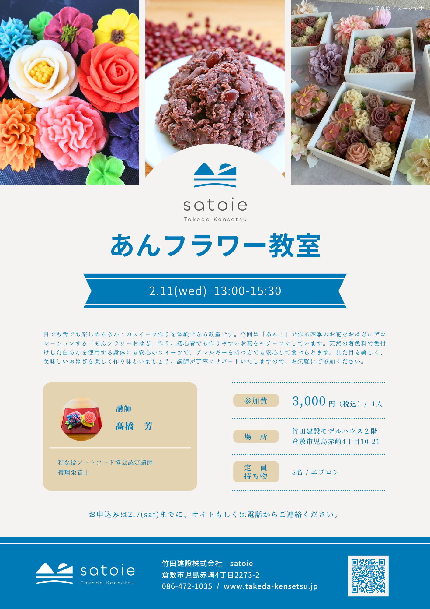 ※参加費は1人3,000円(税込)です。エプロンをご持参ください。
