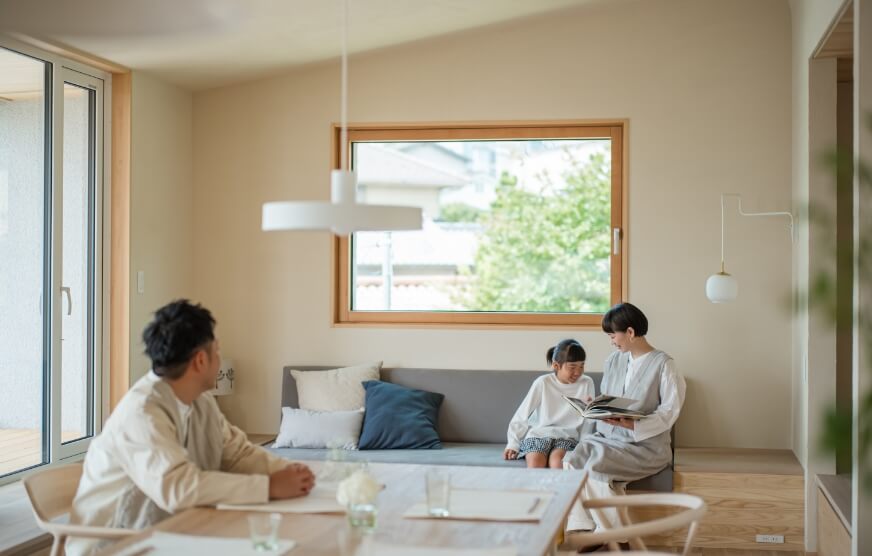 satoieの家づくりでは、「食べる、寝る、家族がいる、自分らしくいられる、夢を叶えていく」、そういった一つ一つが人の幸せの根幹になっているものと考え、生活を営む家がこれらの手助けができる存在になれているかどうかということに重きを置いて設計をしています。快適でかつ安心できる場所であるのは当然のこと、それ以上に家を通して誰かと関わるという繋がりを生めるかどうかも大切だと思います。さらに、自分が住む地域になるからこそ、内側のこと・自分のことだけを考えた家ではなく、外に開いた家で地域との繋がりを感じ、実際に交流が生まれるような家にしたいという想いがあります。