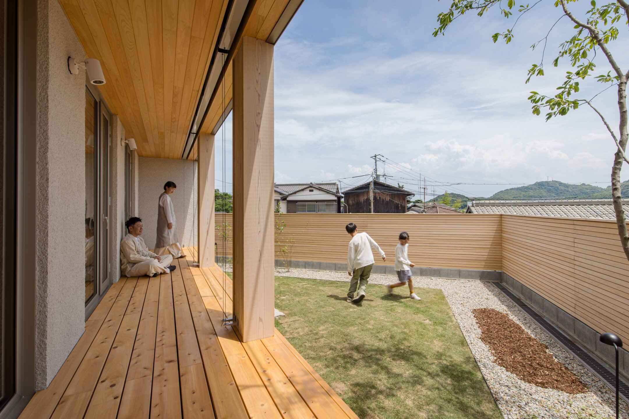 外の光や風を心地よく感じることができる中間領域があることで、お家の中とお庭や自然の風景が一体となった伸びやかな暮らしが実現できます。